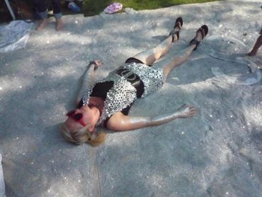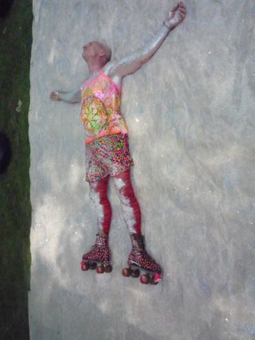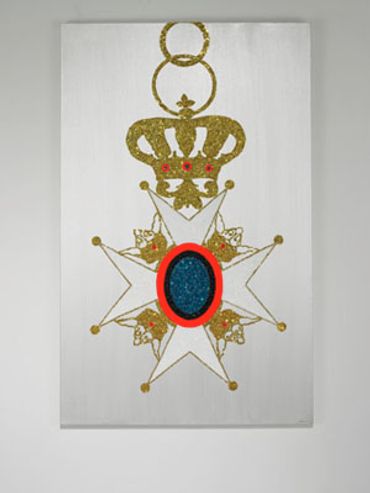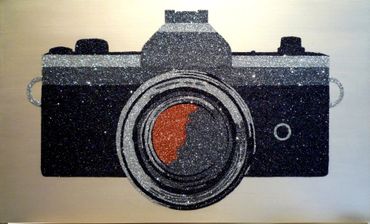 Camomile exploded onto the New York City art scene in her first public showing at Tria Gallery in April of 2010. Using glitter as a primary medium, Camomile created a body of pop art that developed from her work as a musician and songwriter.